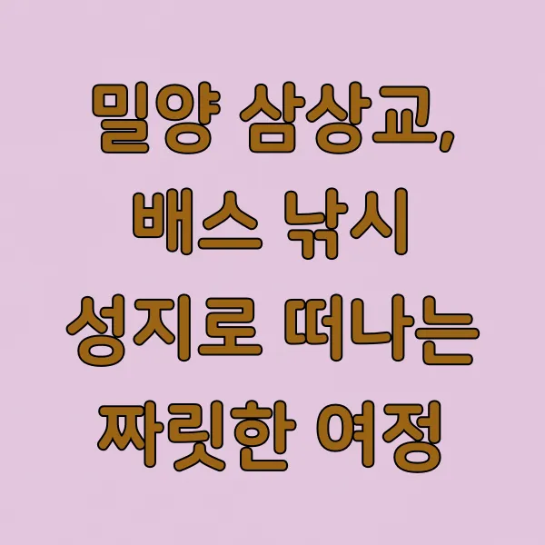 Q7. 삼상교 근처에 숙박 시설이나 식당이 있나요? A7. 밀양 시내와 멀지 않아 숙박이나 식당 이용은 편리합니다. 삼상교 바로 앞에 편의 시설이 밀집해 있지는 않지만, 차로 이동하면 다양한 선택지가 있습니다.
